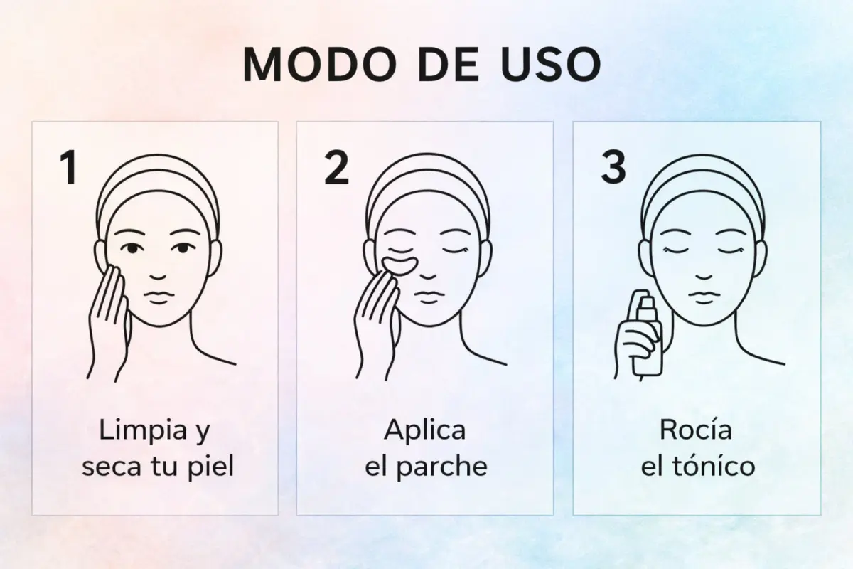 Quitá el segundo protector y pulverizá el serum activador hasta que el parche se disuelva por completo.